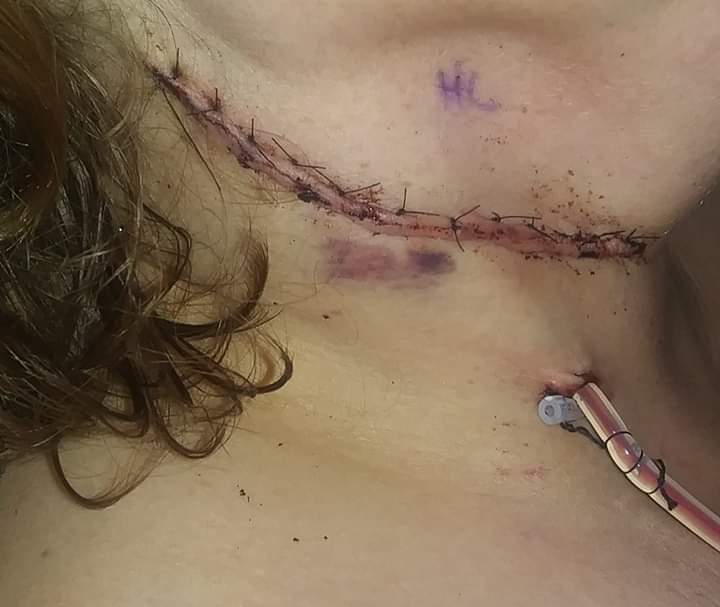 Hi! My name is Angela, and I'm a cancer survivor. Back in December of 2018, when I was first diagnosed with squamous cell carcinoma of the dorsal tongue, I thought that this couldn't be happening to me. I was only 42 years old at the time, and thought "what if this is the end?" I went through my surgery where they did a partial glossectomy and removed a quarter of my tongue. That was when my journey really began! I had to heal from my surgery before anything else could be done. So after I was healed up, I proceeded to go to speech therapy where I had to learn how to talk again. This took a financial toll on my husband and I, driving 3 times a week to therapy. I was also only able to eat blended foods, so I took to blending fruits and juices to sustain myself. As we all know, fruits and fruit juices are some of the most expensive things to buy. I had to though! With what money I had, I made it work and I can only say that it was by the grace of God that I did so. Nine months later, I was again diagnosed with cancer, but this time it was in the lymph nodes f my neck. It had spread and no one knew it. Not until I found a mass in my neck and they did a biopsy on the mass. I was told, once again, it's cancer. My husband and I were already broke from the first cancer ordeal, then to top it off, it was our slow time of the year for our business. I ended up having a right neck dissection, where they took out the saliva glad and 16 other lymph nodes as well. My heart was broken at this point. It's not that a deformity really bothers me, but it has taken its toll on me. Just in the past few weeks, I finally had a pet scan done, but they still cannot rule out a recurrence of a cancer tumor in my neck. So, time goes by and I do the best I can, but the thought is always with me! Update: The PET scan did reveal that I had another mass in my neck. A mass that had spread from the lymph nodes from the last surgery I had, and yet again, no one knew about it. So, on I went to surgery #3. This surgery wasn't as bad as the neck dissection, but it's had a lasting effect on me. After this time of being diagnosed with cancer, a round of radiation was recommended. I wasn't told much about this radiation they wanted to do, but I went through with it. I was then sent to a local Cancer Center, where without me knowing, they'd mold a plastic mask of my head, face, neck, and chest. That wasn't the only thing I didn't know what was coming. Once the mask was molded and set, it was put on me 5 days a week for 7 weeks, and then bolted to a table so that I would not move while I was having a treatment. My then oncologist refused to put in a feeding tube, so the weight came off like I'd never seen. Within that 7 weeks, I lost 105lbs. I looked deathly. I felt that way too. I had no interest in eating, drinking, etc. Sleep is the only thing I wanted at this point. Time passed and I regained some of my strength. I started living again!