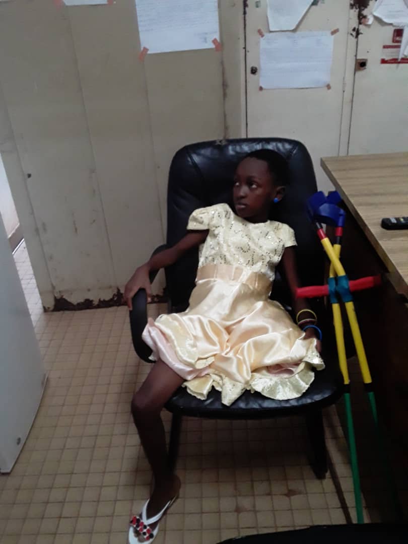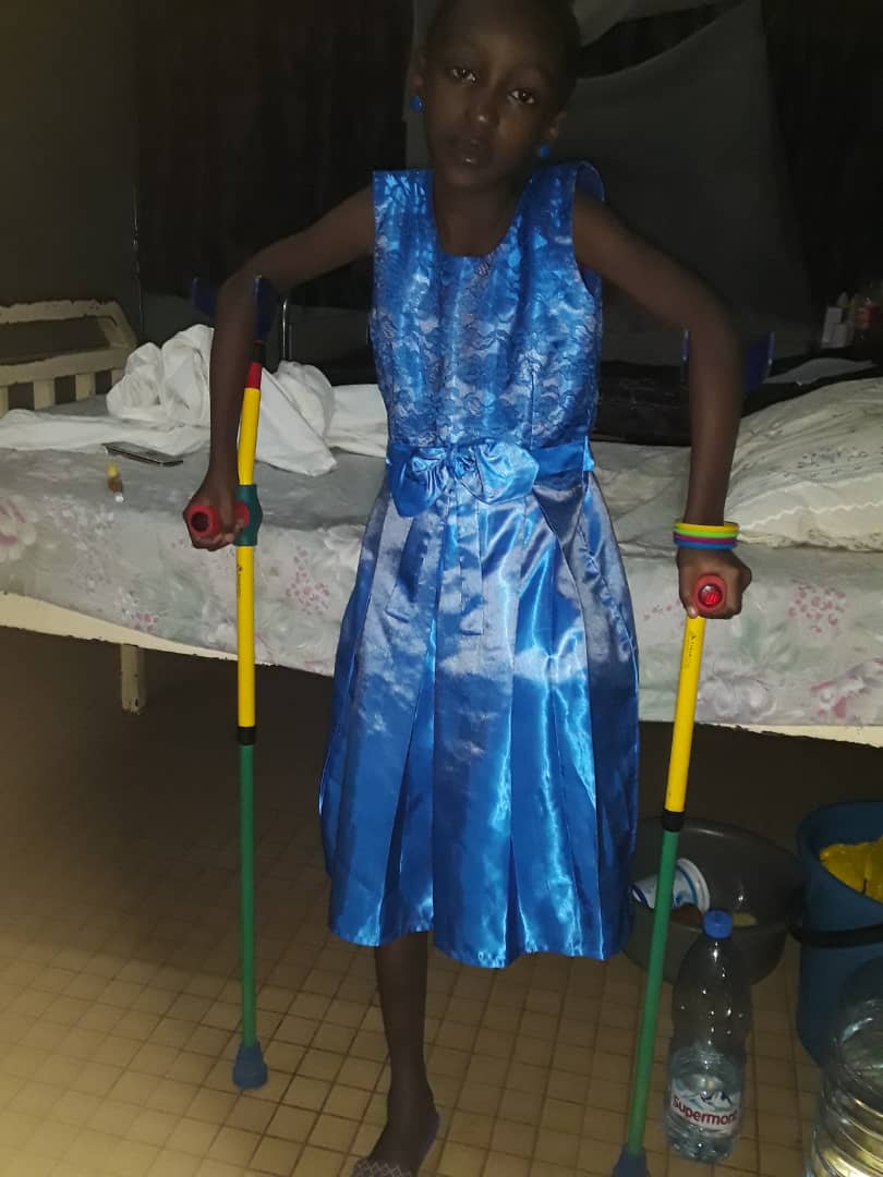 When Melanie sprained her leg at home, we took her to the Etoug-Ebe Health Center, Yaoundé, Cameroon. She was given some pain killers and a rub. After two weeks her pain and swelling increased. We made the decision this time, to take her to the Etoug-Ebe Handicap Center. She had an X-RAY, scan and other tests which came back positive for bone cancer. Her doctor recommended that the best option was to have the affected leg amputated which was done on the 5th of December 2019.